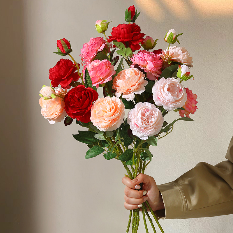 牡丹仿真花絹花干花花束餐桌客廳花開富貴裝飾擺件永生花假花擺設