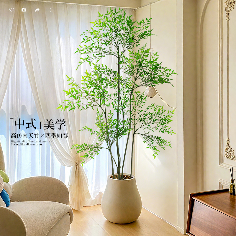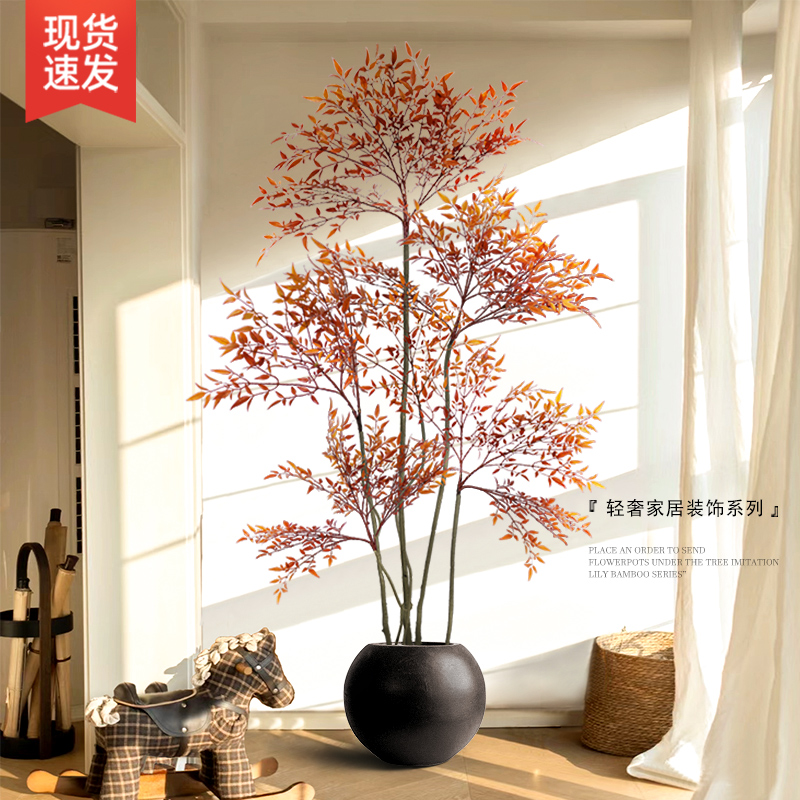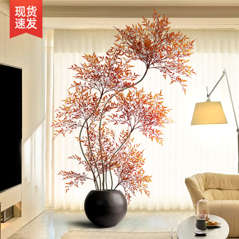 仿真植物南天竹落地盆栽室內大型仿生綠植擺件客廳輕奢裝飾花假樹