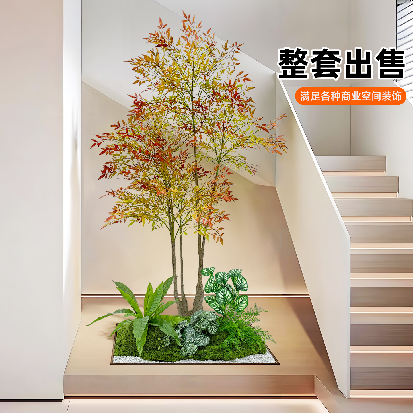 仿真植物室內造景景觀組合樓梯下擺件裝飾高級仿生植物落地盆栽樹