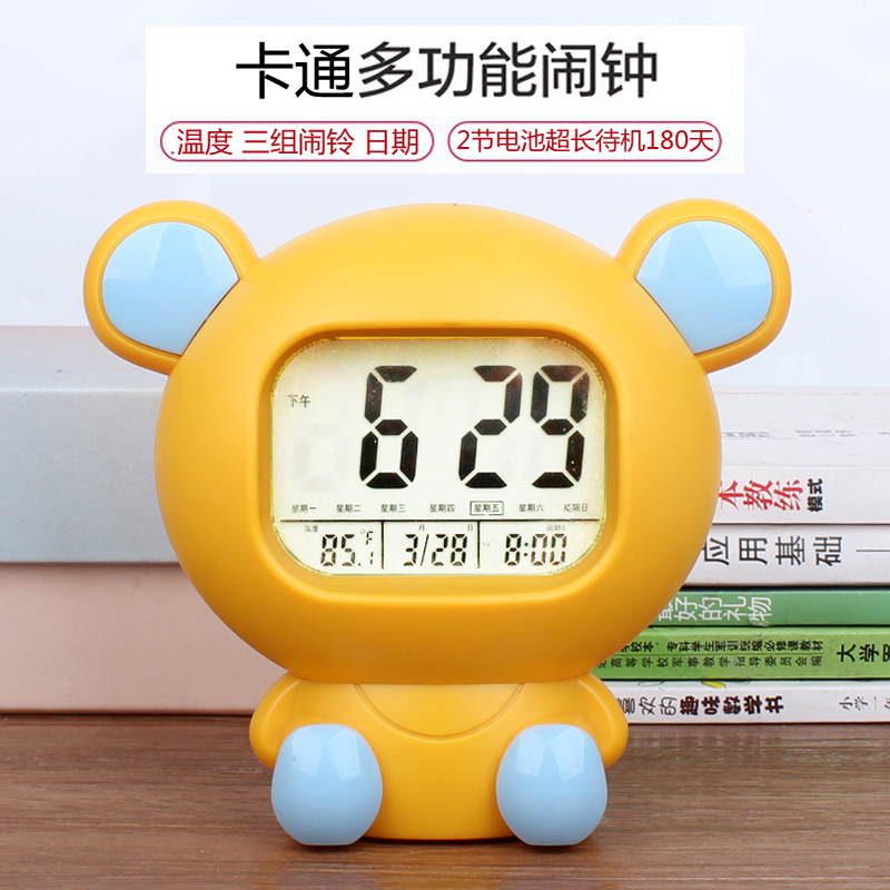 超長待機電子智能三組鬧鈴卡通鬧鐘學生床頭靜音多功能大聲音報時