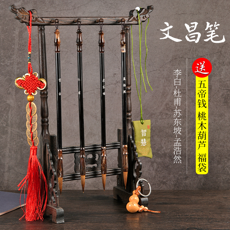 文昌毛筆四支文曲星筆架學生禮品書桌擺件掛件刻名字詩人文房四寶