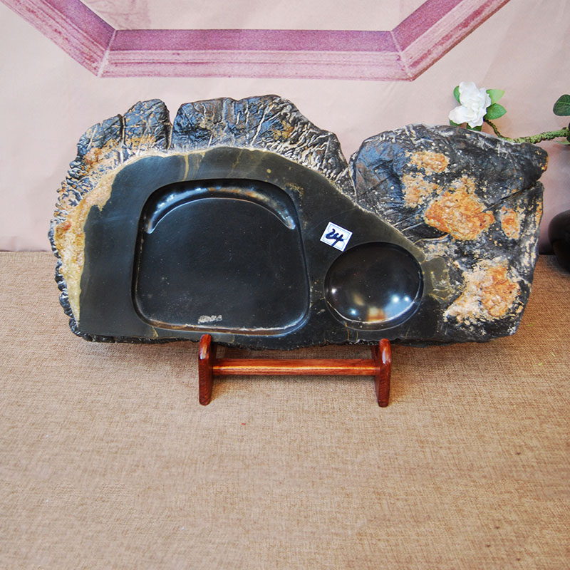 原石帶蓋八卦太極歙硯書法書法書畫實用文房四寶硯臺墨條宣紙毛筆