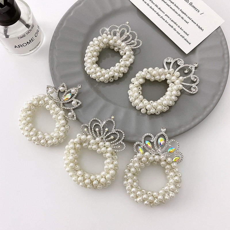 兒童珍珠公主皇冠發圈寶寶高彈力丸子頭發繩女童頭繩皮筋頭花頭飾