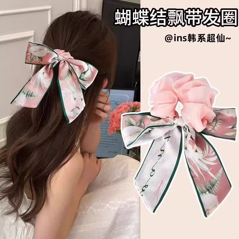 蝴蝶結發帶女2025新款飄帶頭繩大腸發圈發量多扎頭發皮筋發飾發繩