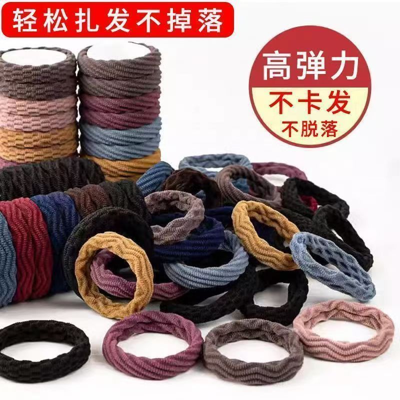加厚加粗高彈力頭繩毛巾圈爆米花彩色無接縫發圈馬尾頭繩發繩發飾