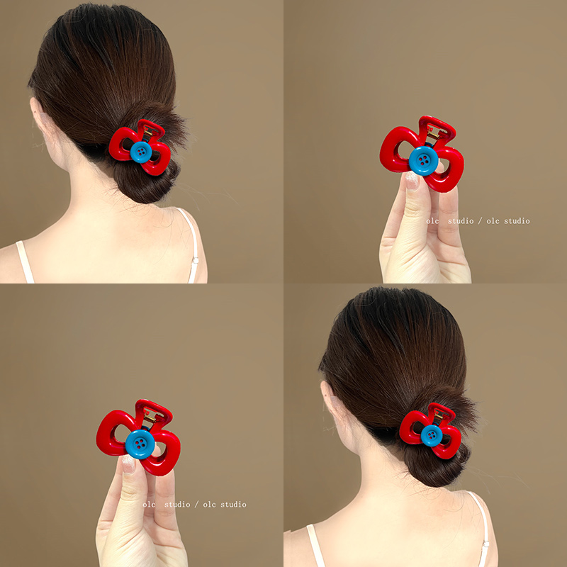 復古酒紅紐扣!超正紅色抓夾中號鯊魚夾!后腦勺夾子發抓女盤發器