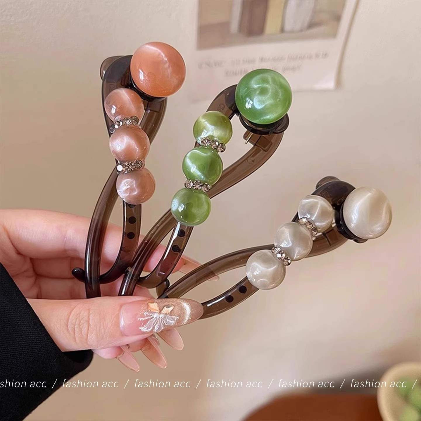 夏天簡約隨手盤發一字扭扭夾發飾女后腦勺盤發頭飾漸變珠珠發夾女