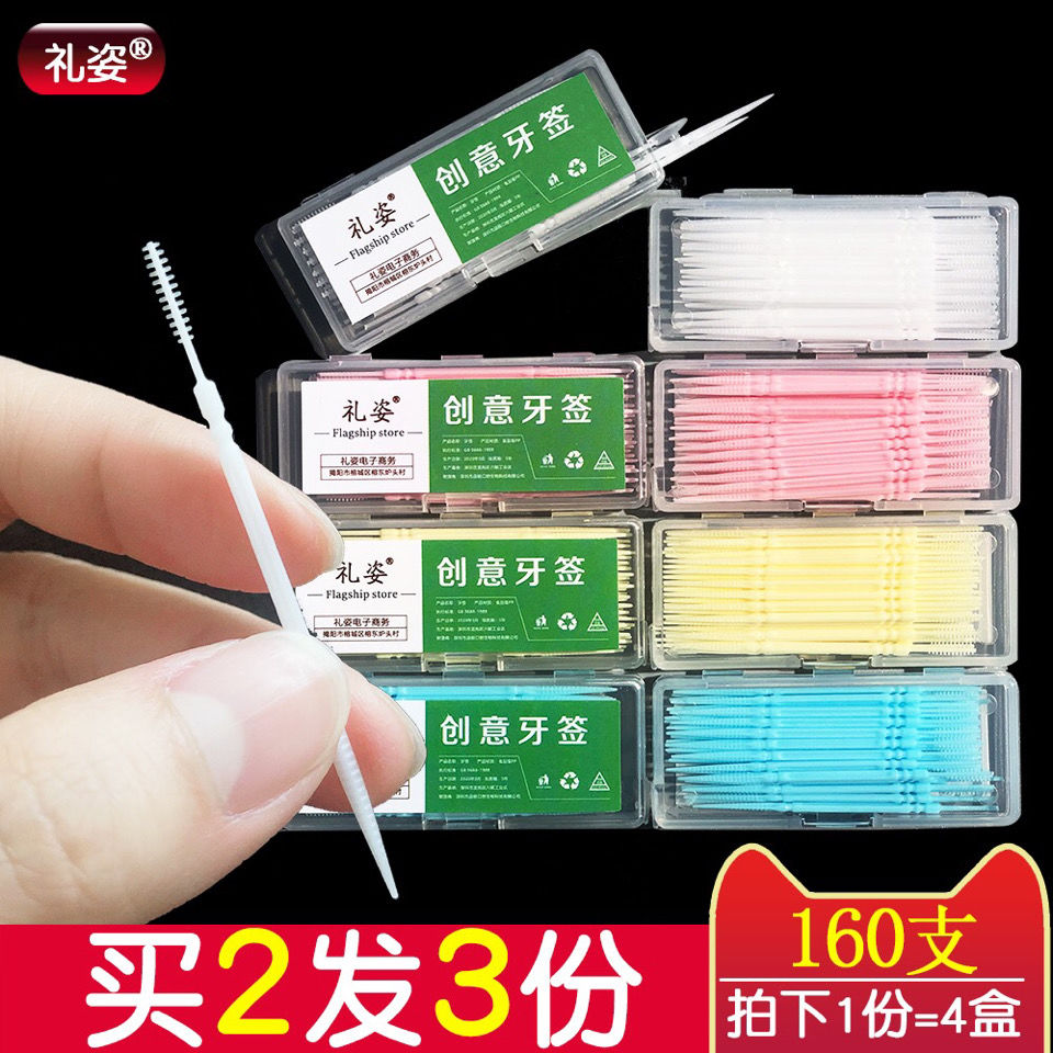 一次性雙頭牙簽刷隨身塑料魚骨牙簽酒店家用剔牙神器便攜刷牙縫刷