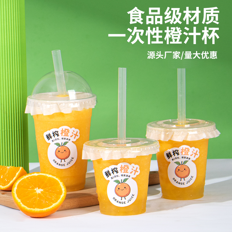 鮮榨橙汁杯網紅98口徑西瓜汁擺攤外賣打包杯一次性冷飲杯子帶蓋