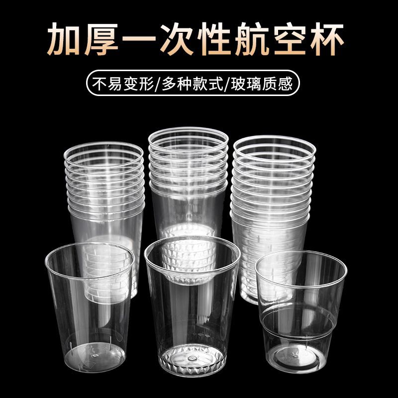 航空杯一次性杯子食品級加厚加硬塑料透明家用水杯茶杯啤酒杯商用