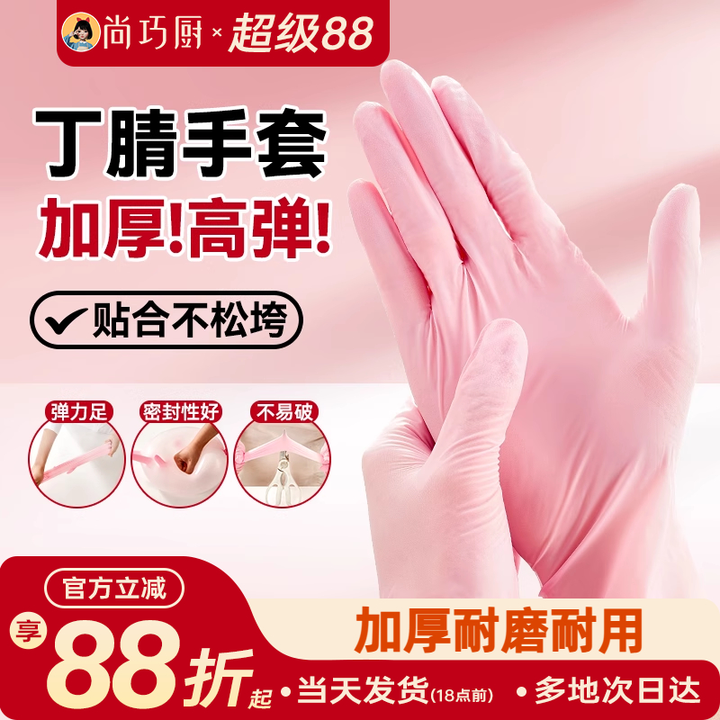 一次性丁腈手套加厚耐用勞保食品級高彈餐飲居家維修實驗多用途