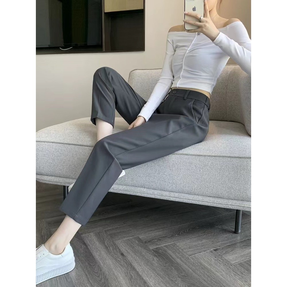 黑色西裝煙管褲女春秋2025新款九分高腰垂感顯瘦小個子休閑直筒褲