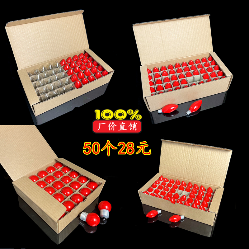 50個E12螺口蓮花燈鎢絲財神E14供燈B22神臺拜佛E27圓長明紅色燈泡