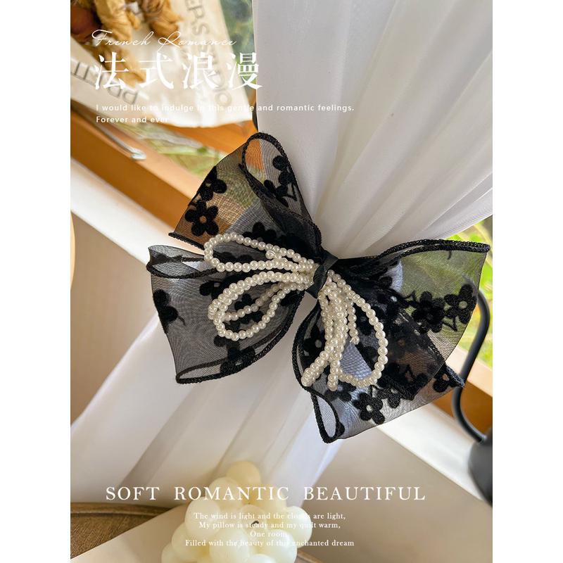 法式復古紗簾綁帶窗簾扣扎束帶綁窗簾的蝴蝶結蕾絲珍珠系帶繩扎帶