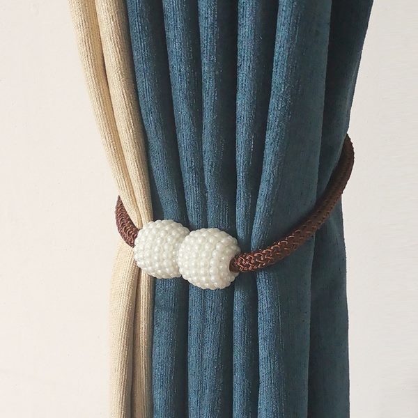 珍珠窗簾綁帶一對裝繩子現代簡約紗簾綁帶磁鐵窗簾扣環綁繩免打孔
