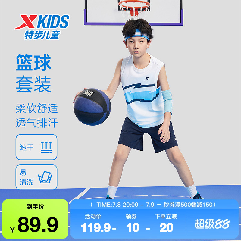 特步童裝中大童夏季款透氣速干兒童無袖短褲兩件套男女童籃球套裝