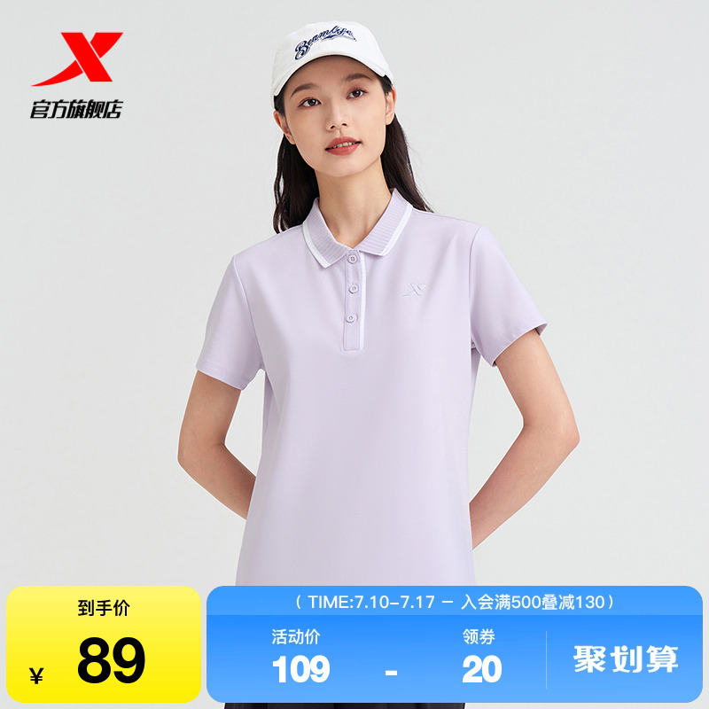 特步短袖女裝2025夏季官方運動休閑跑步修身白色翻領女子POLO衫
