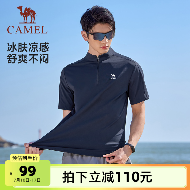 駱駝健身服速干衣男2025夏季防曬冰感透氣短袖高爾夫立領T恤