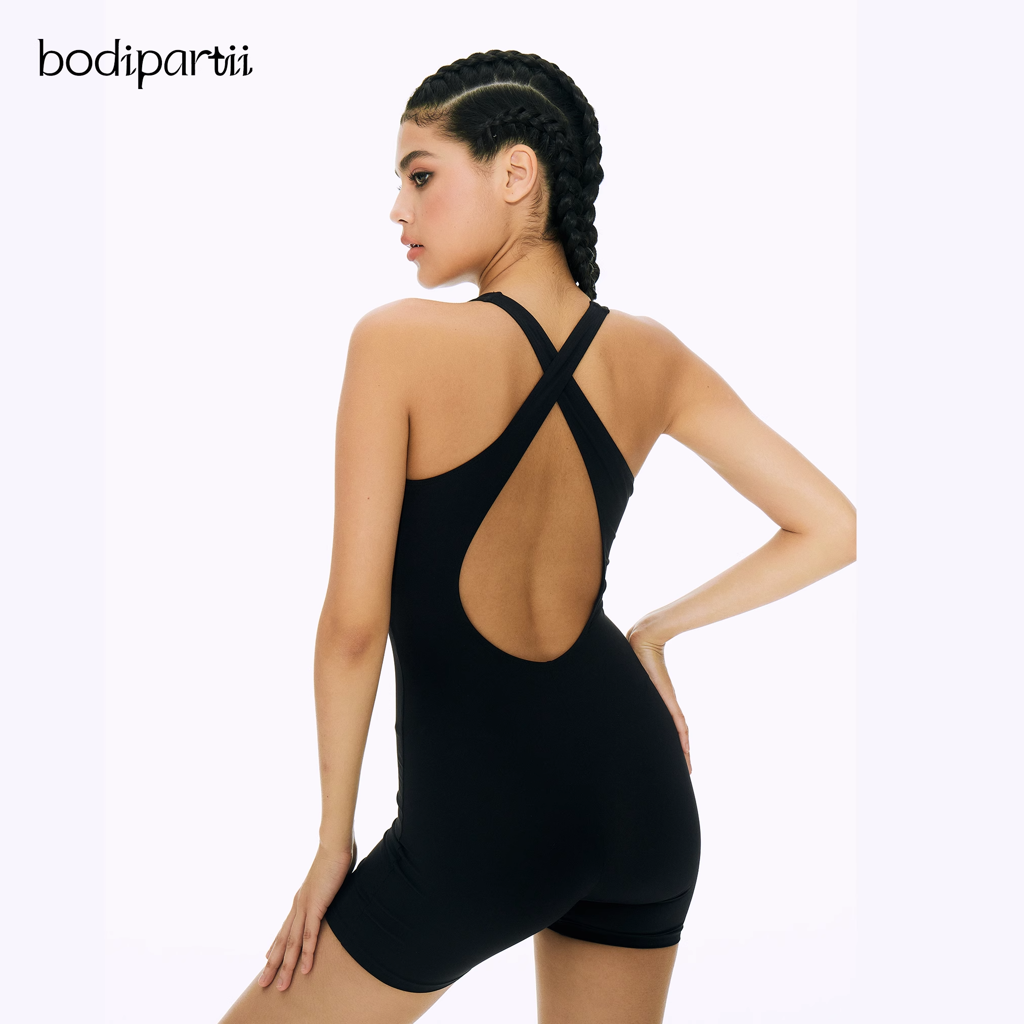 bodipartii連體露背女士瑜伽服短款美背運動一體式健身衣彈力緊身
