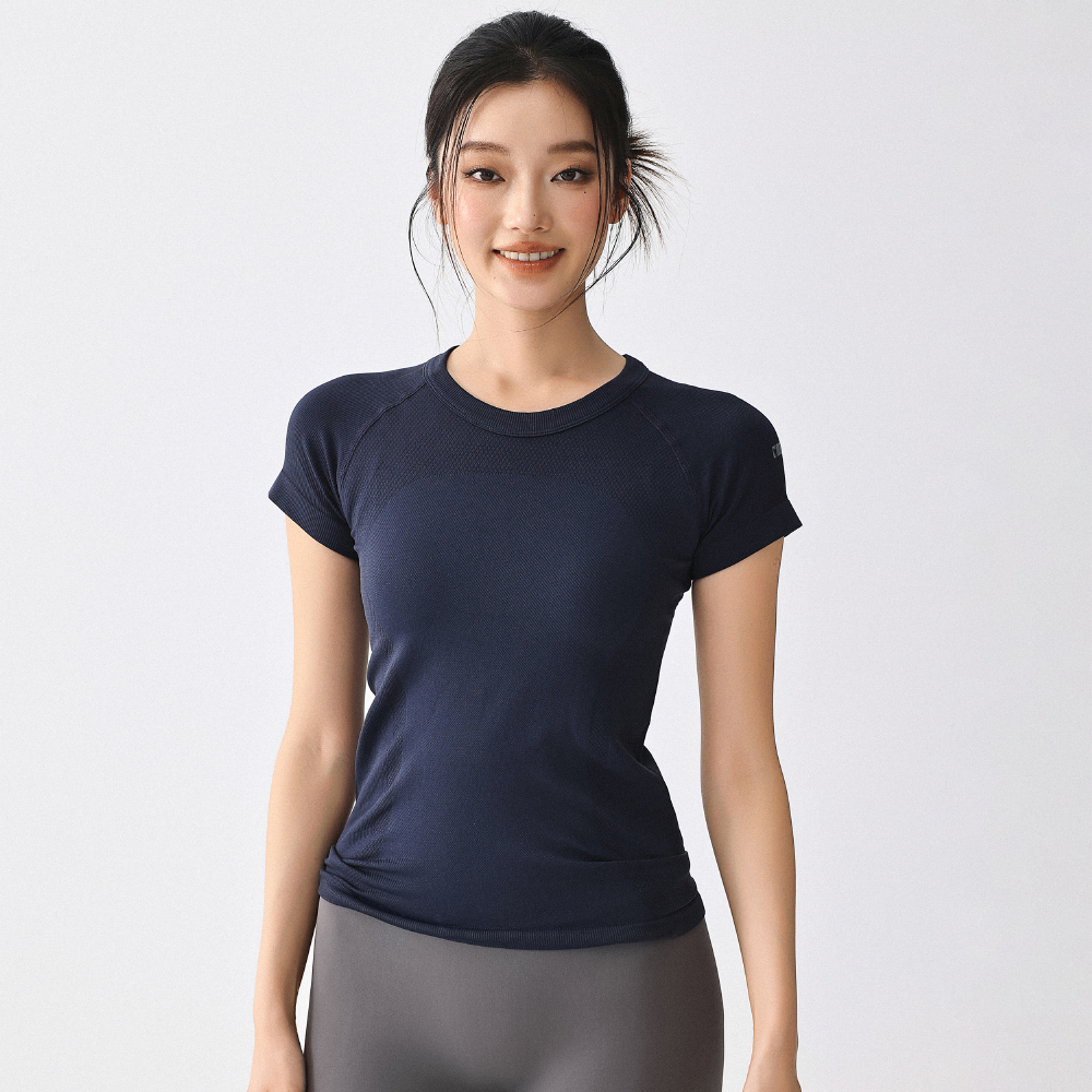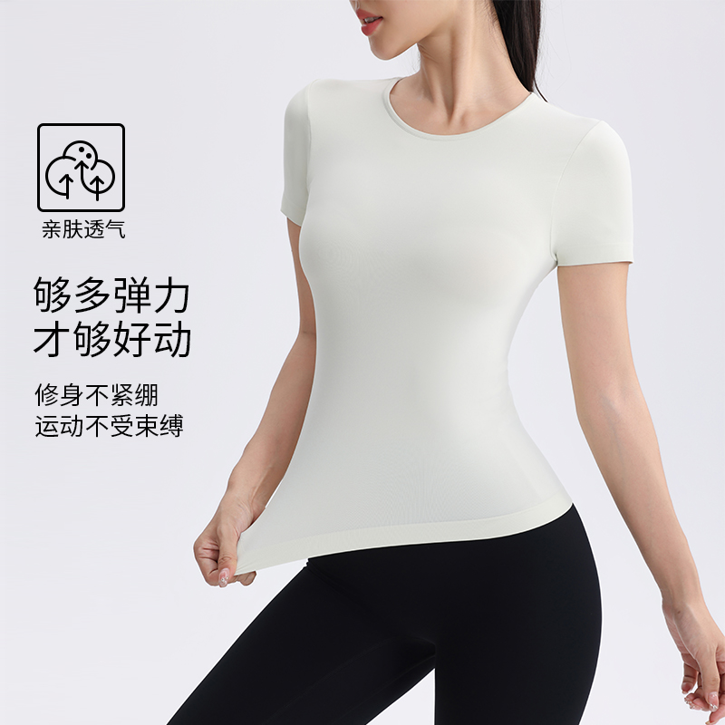 輕薄裸感瑜伽服女純色運動短袖夏季時尚彈力修身顯瘦健身服T恤