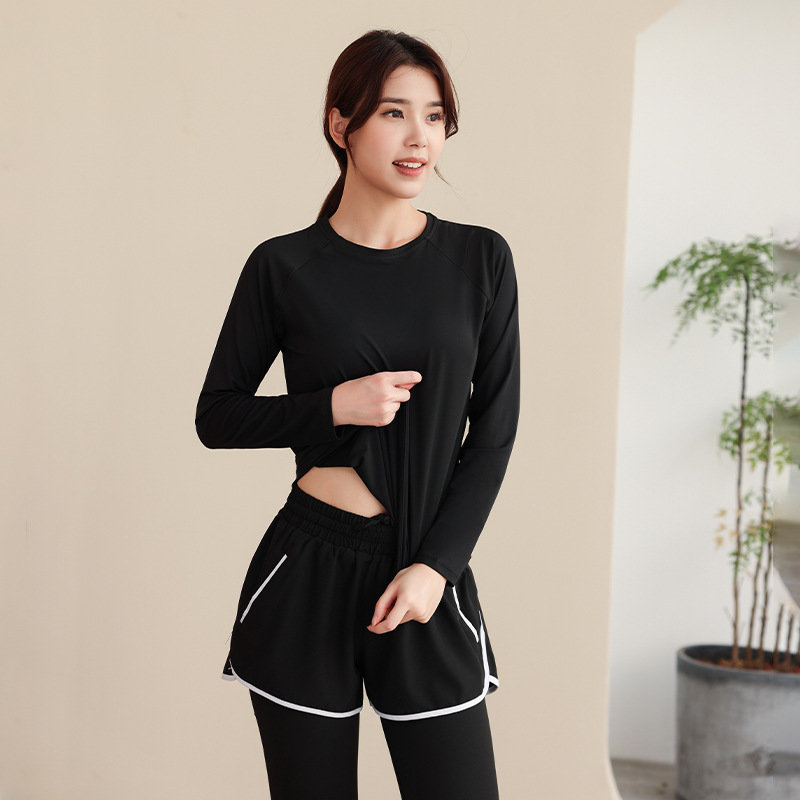 瑜伽服長袖套裝薄款帶胸墊女速干跑步運動健身服普拉提訓練服