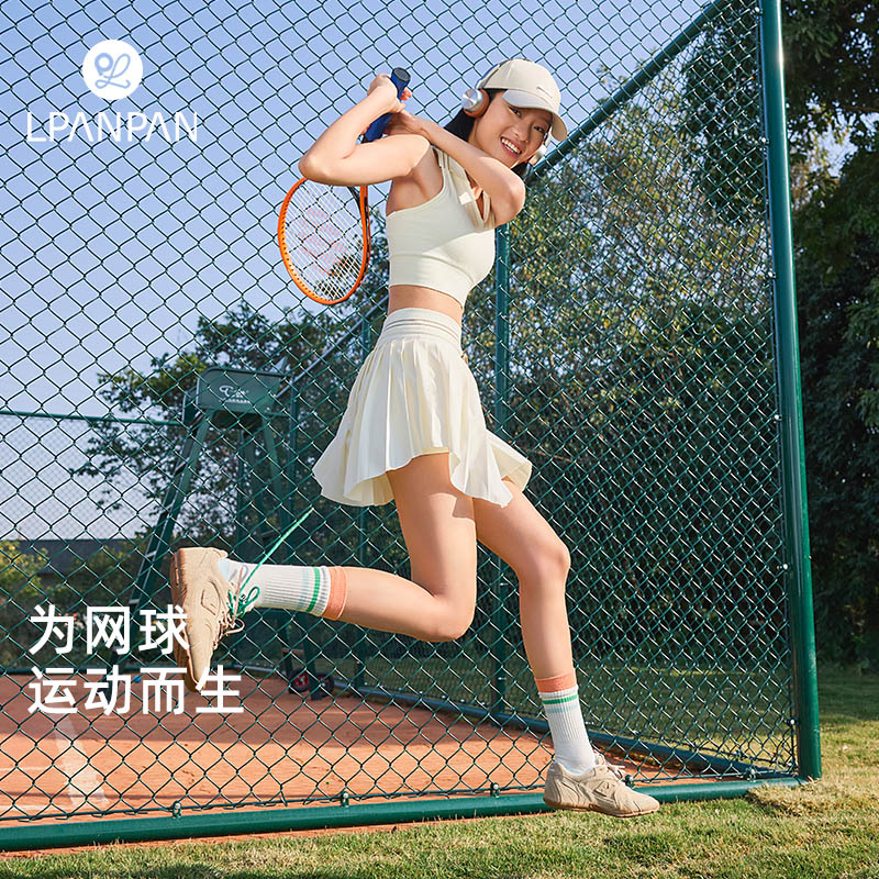 LPP藍畔網球裙運動套裝V型polo領無縫一體運動背心波浪邊A字百褶