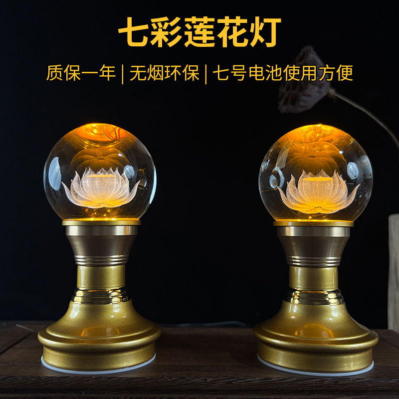 LED佛燈電池七彩水晶球蓮花燈插電家用菩薩神臺佛供燈佛堂長明燈