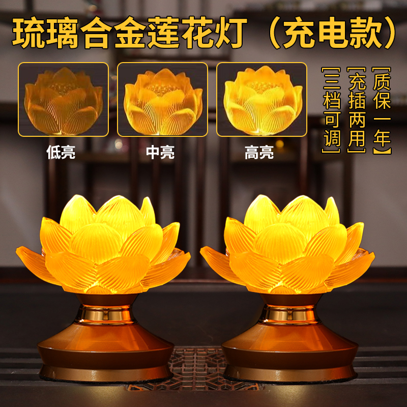 新款琉璃蓮花燈家用一對led充電款佛前供燈佛堂燈供奉菩薩長明燈