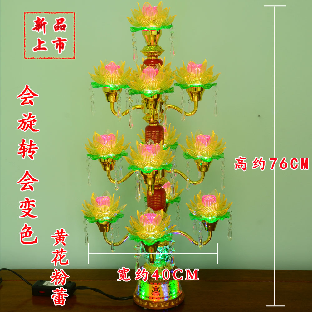 新款 寺廟家用LED小13品荷花燈七品九品七彩蓮花燈旋轉變色供佛燈