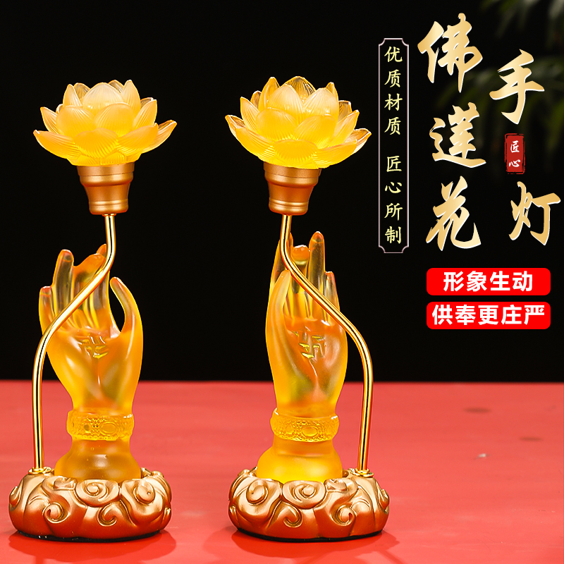 led琉璃蓮花燈佛供燈佛堂佛前觀音菩薩供奉荷花燈家用插電長明燈