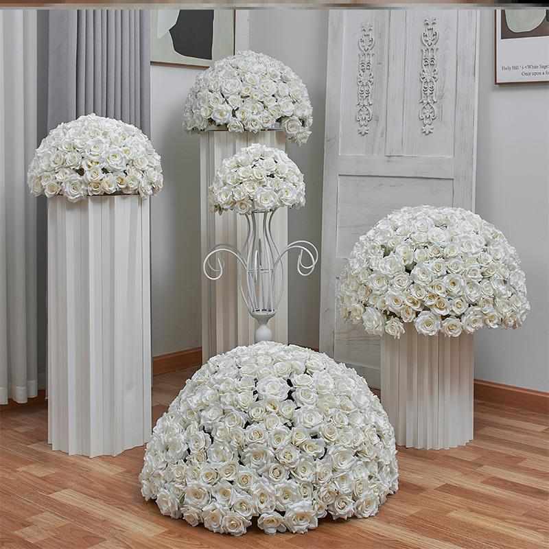 新款仿真玫瑰花球婚禮餐桌裝飾桌花幾何架子路引櫥窗展廳布置絹花