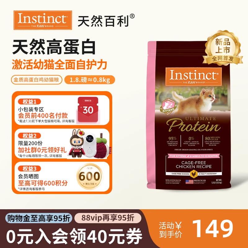 [官方旗艦店]Instinct天然百利貓糧進口高蛋白雞肉幼貓貓糧0.8kg