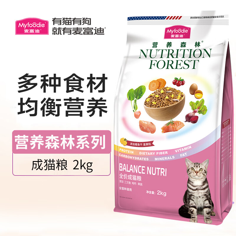 麥富迪營養森林貓糧三文魚蛋黃成貓幼貓2kg成貓幼貓專用美毛