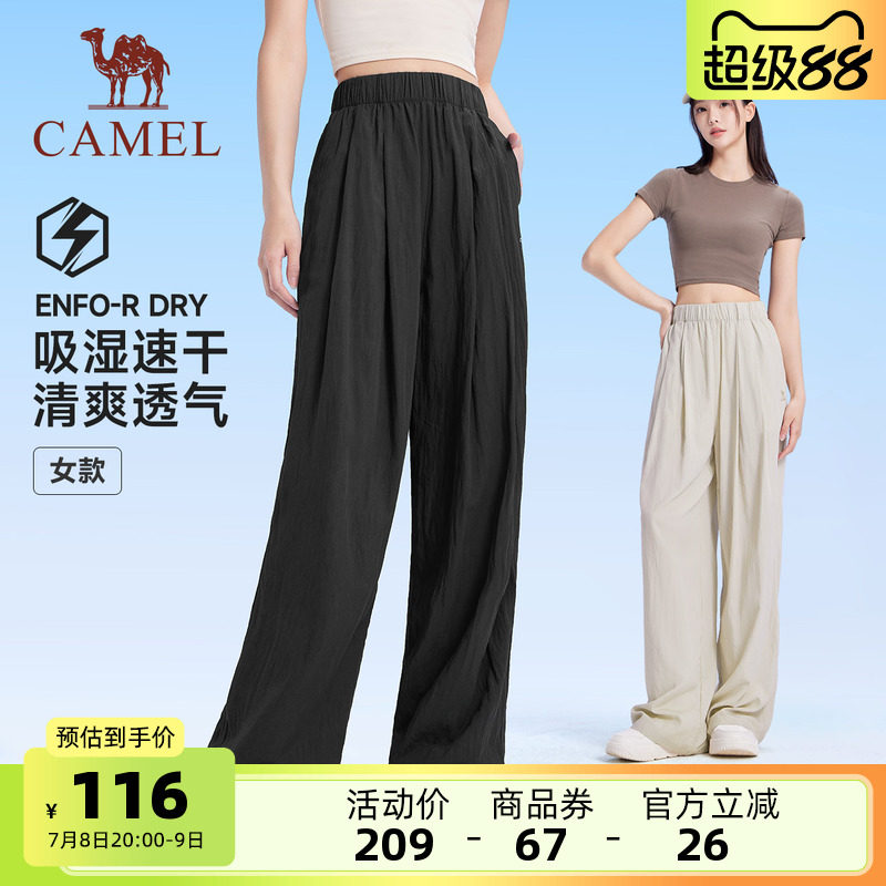 駱駝漫游防曬褲女2025春夏季新款寬松高腰直筒登山休閑速干闊腿褲