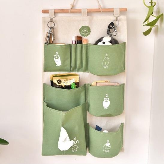 教室壁掛接送卡收納袋內衣口罩銀行卡插電卡儲物袋帆布多層雜物袋