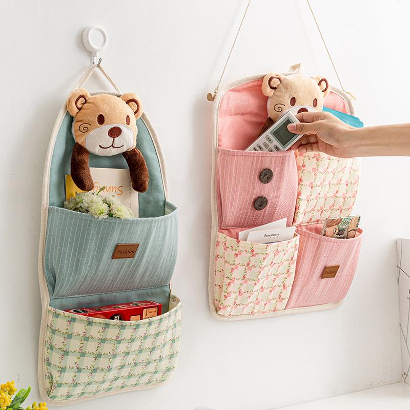 布藝鑰匙手機雜物收納袋宿舍神器門后掛墻上墻掛式學生多層壁掛袋