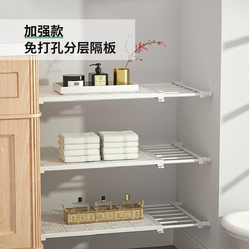 衣柜隔板分層免打孔 衣櫥柜內可伸縮置物架衛生間墻上收納整理架