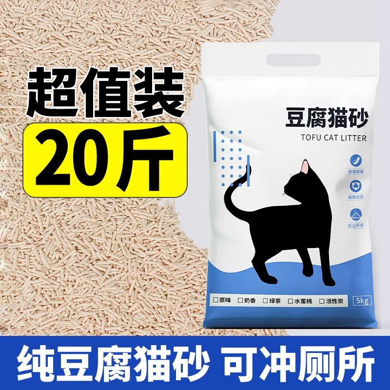 豆腐貓砂貓砂20斤低塵10斤不易粘底大包貓舍多貓家庭植物混合