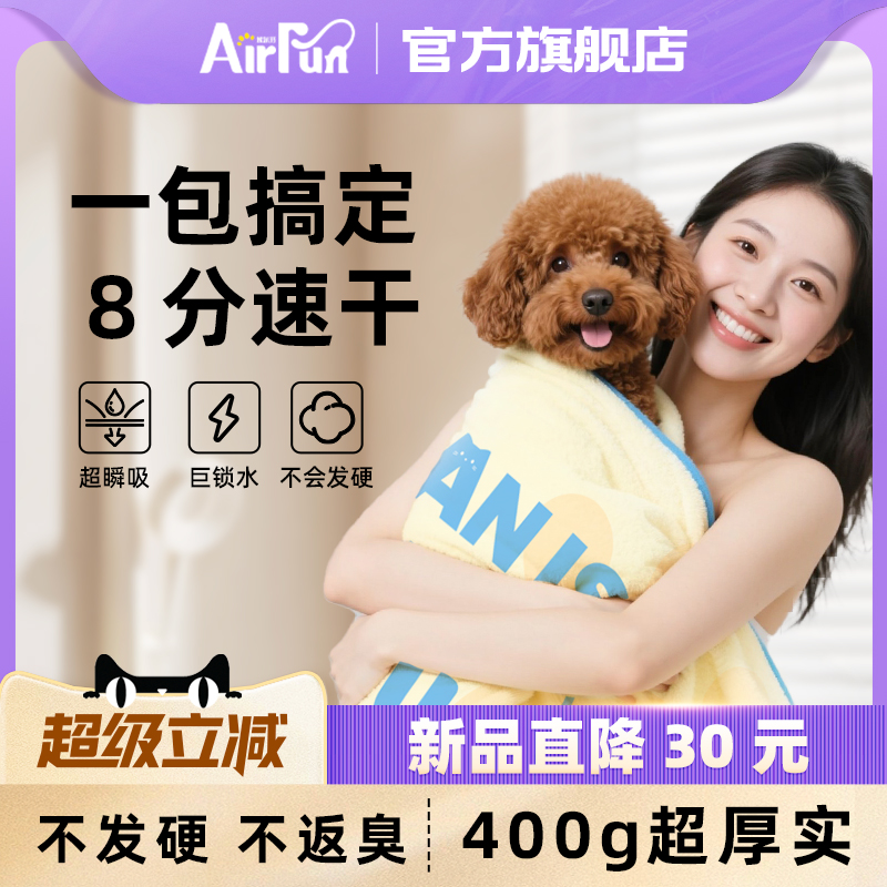 Airfun埃爾芬狗狗吸水速干大號浴巾貓咪加厚浴巾洗澡專用