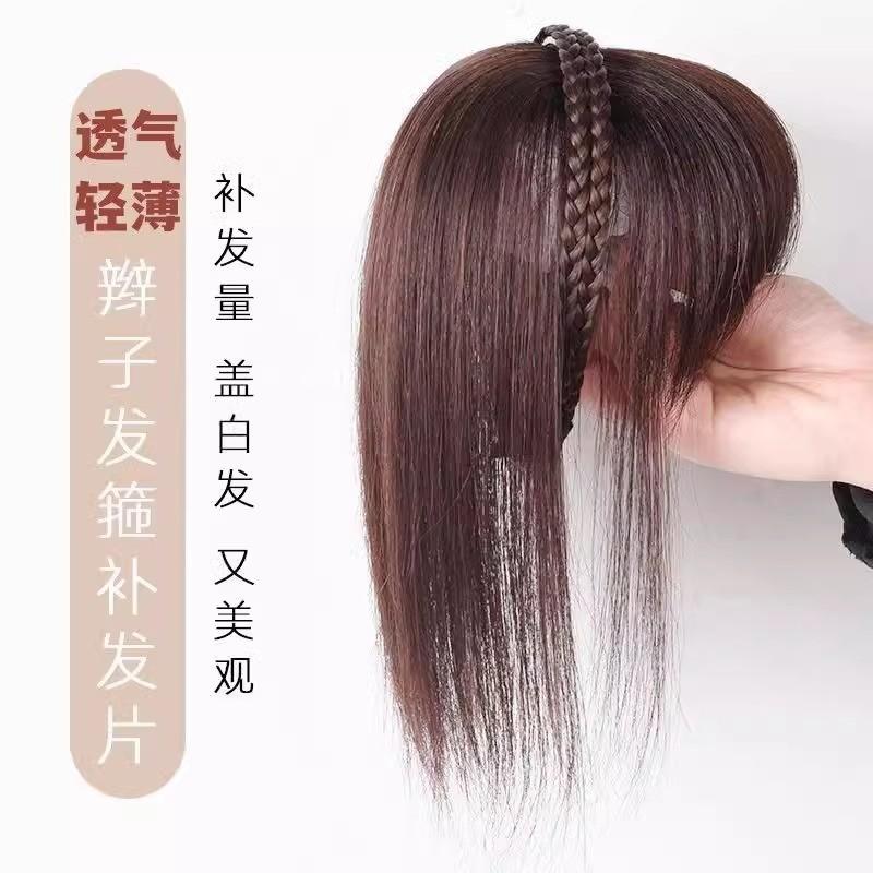 發箍劉海一體真發遮白發神器假發發片頭頂前額的頭飾遮蓋發卡發套