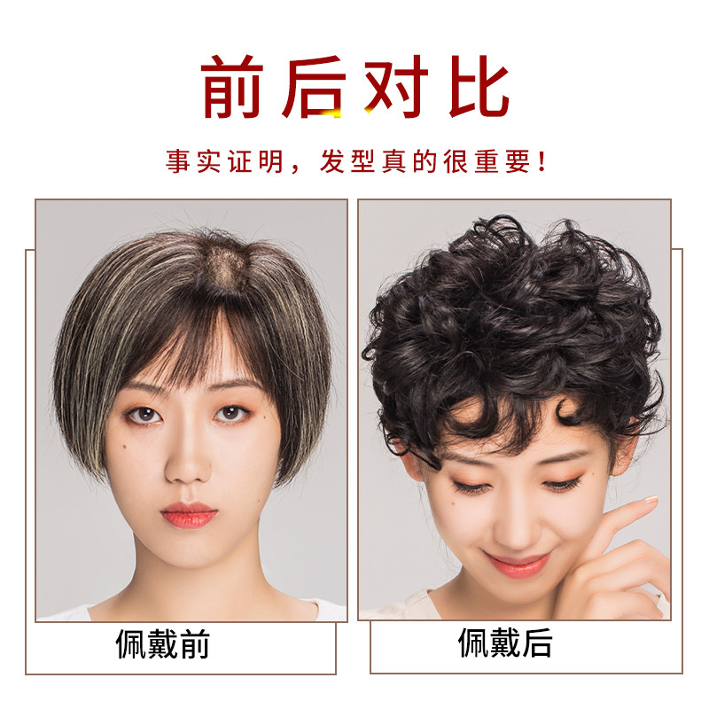 假發片女頭頂真發絲遮白發蓬松中年女自然卷發補發片中小卷全手織