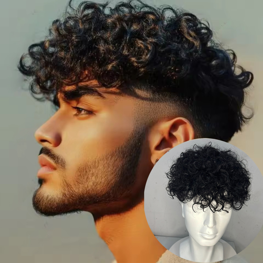 男士假發頭頂補發片真人羊毛卷自然蓬松遮白發男生短發卷發補發片