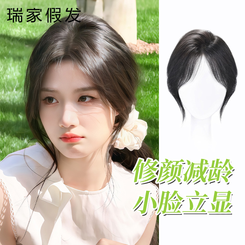 六嘟假發片女中長發直發真人發絲無痕遮白發頭頂自然斜劉海補發塊