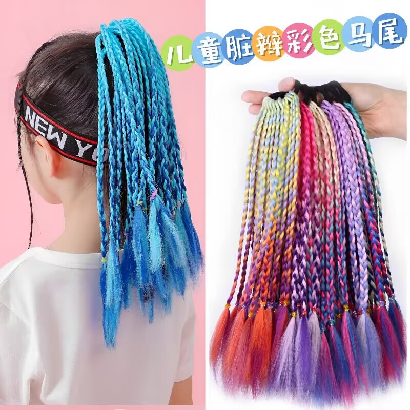 假發辮子臟辮彩色小辮子馬尾辮子嘻哈麻花辮漸變色民族風辮子假發