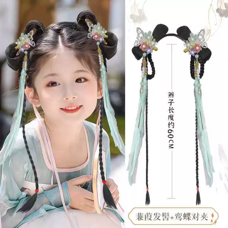 兒童漢服假發包盤發古裝一體式發箍假發辮發飾古風造型發簪頭飾