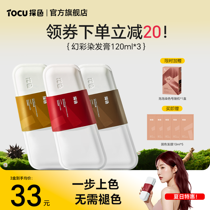 探色染發膏3盒在家自己染樹莓紅植物染發劑女純蓋白黑茶色染頭膏
