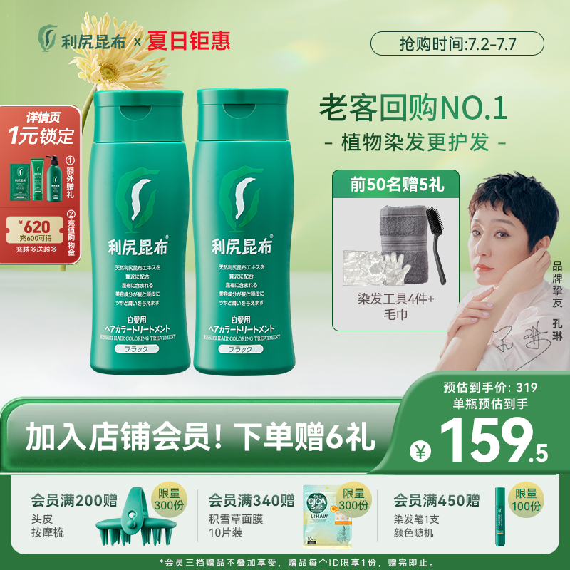 日本進口利尻昆布染發膏染發劑2瓶純植物天然無刺激遮白發在家染