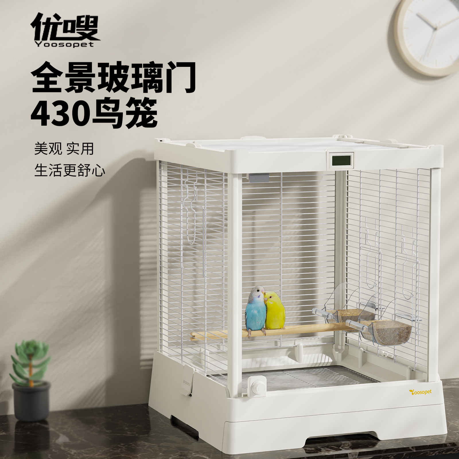 優嗖430玻璃鳥籠氛圍燈鸚鵡籠全景透明觀賞牡丹文鳥小寵家用別墅
