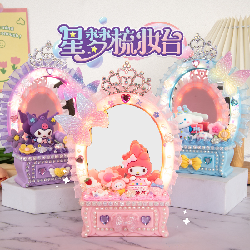 2024新款女孩奶油膠梳妝臺燈收納盒兒童DIY手工化妝鏡益智玩具