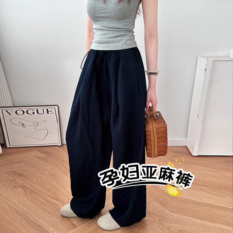 孕婦褲子2025新款外穿休閑亞麻褲夏季薄款不勒肚子百搭直筒闊腿褲